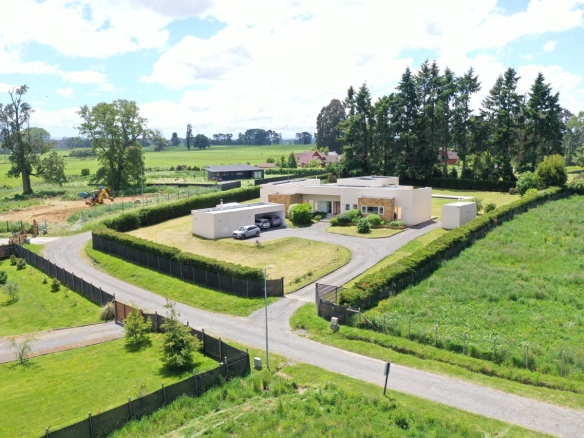 En maravilloso entorno natural, rodeado de arayanes y hualles y todas con orilla del rio Calcurrupe. Con la tranquilidad de la seguridad del condominio.